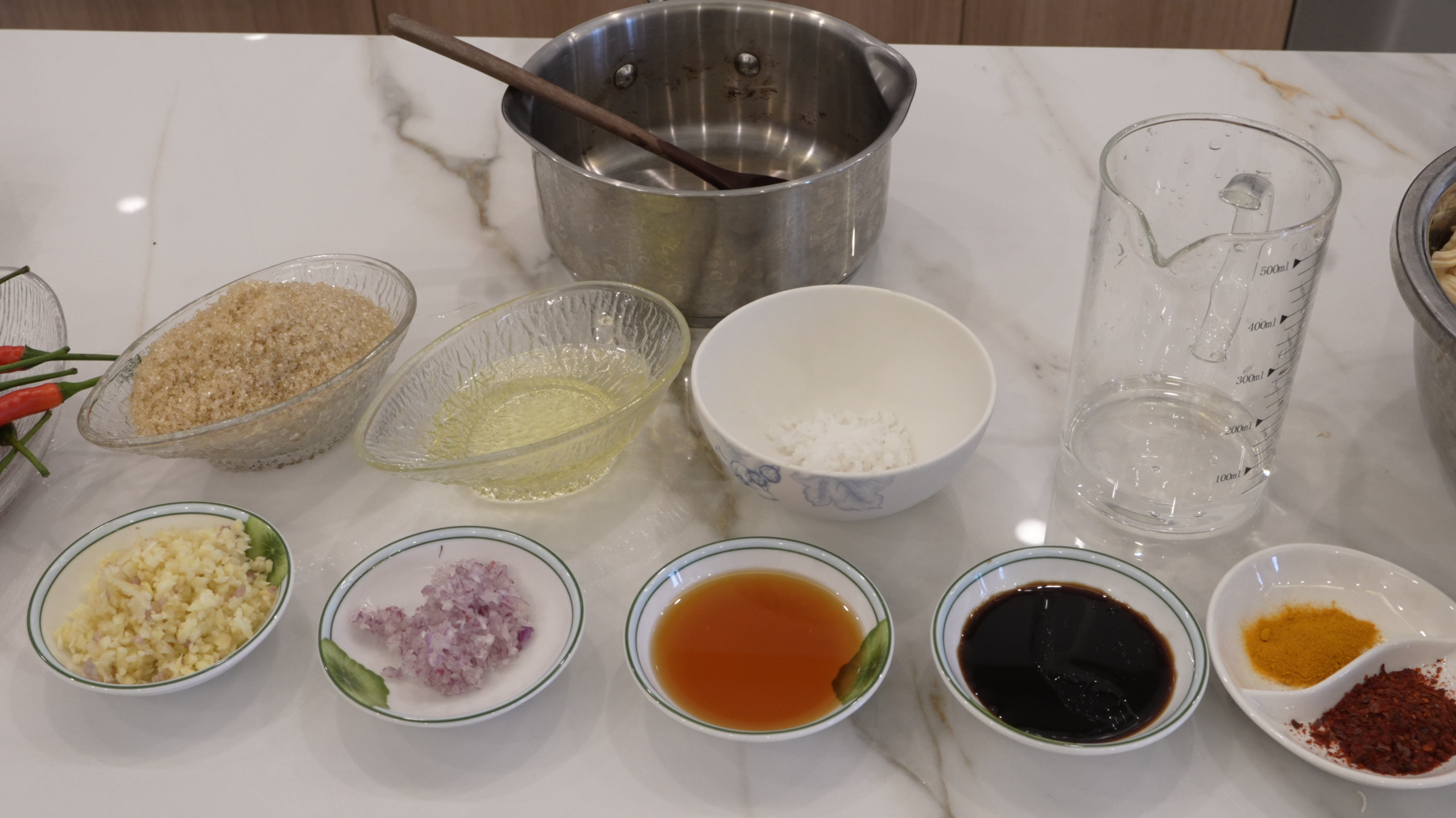 20g fish sauce, 20g soy sauce, 150g sugar,