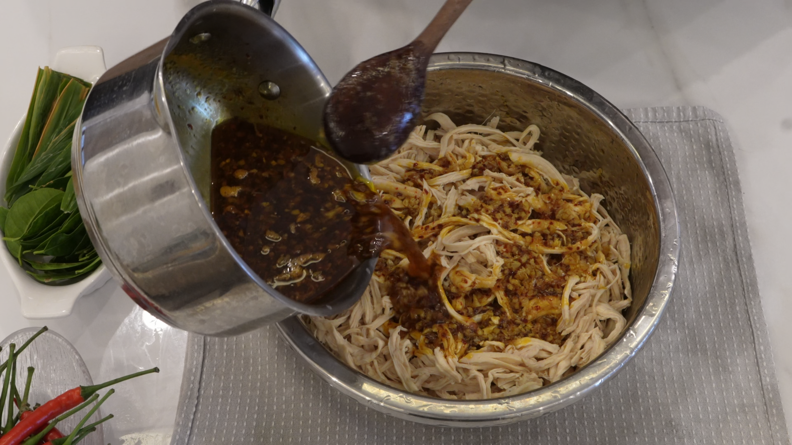 Recipe for marinating shredded chicken: