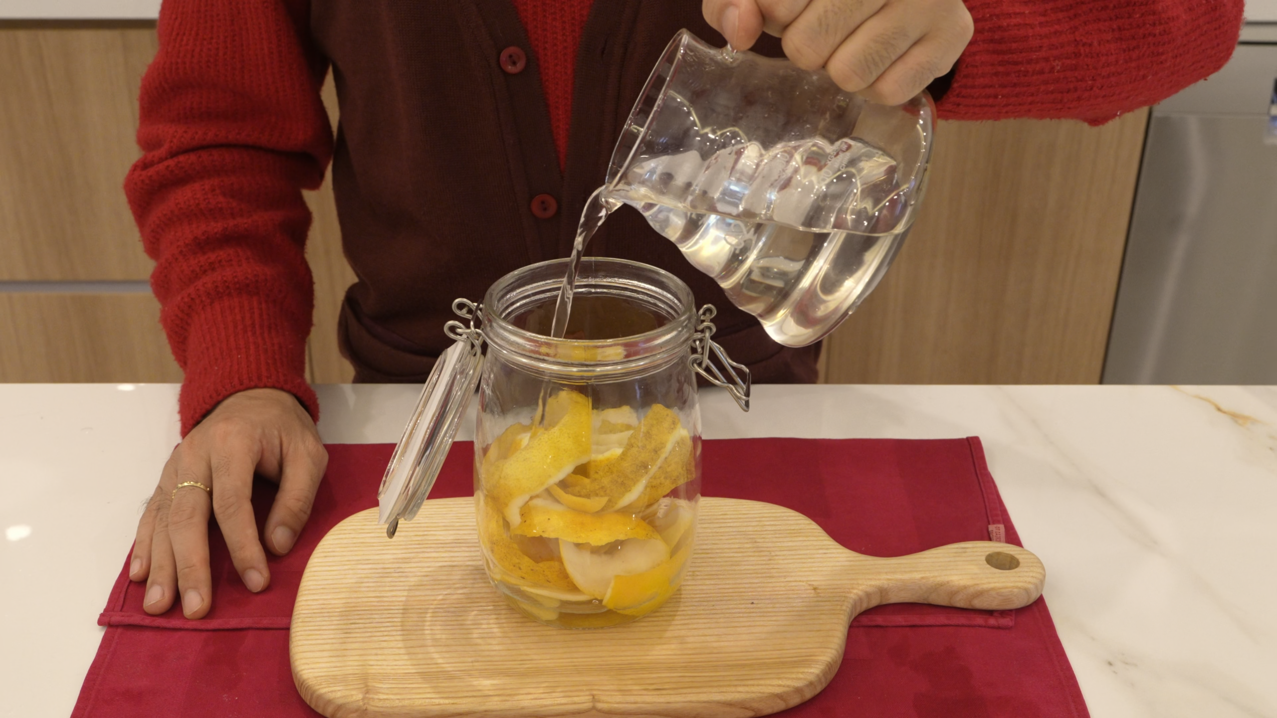 Soak the lemon peel in strong liquor in a sealed jar in a dark place,