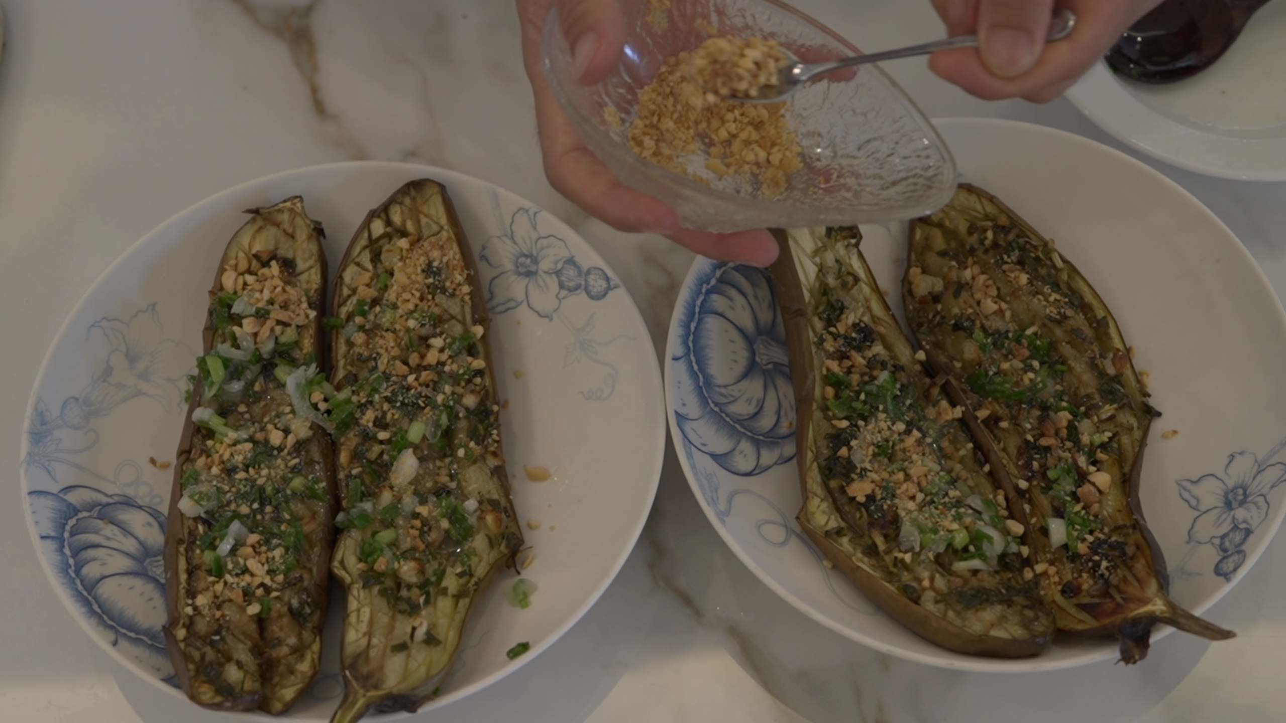 Món thứ 3: Cà tím nướng mỡ hành | The 3rd dish: 🍆 Grilled Eggplant with scallion Oil