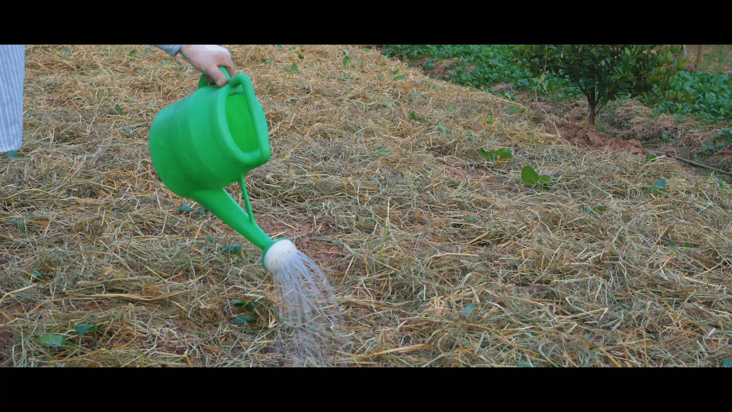 And then cover them with straw like a blanket for a green sleep and watering them.