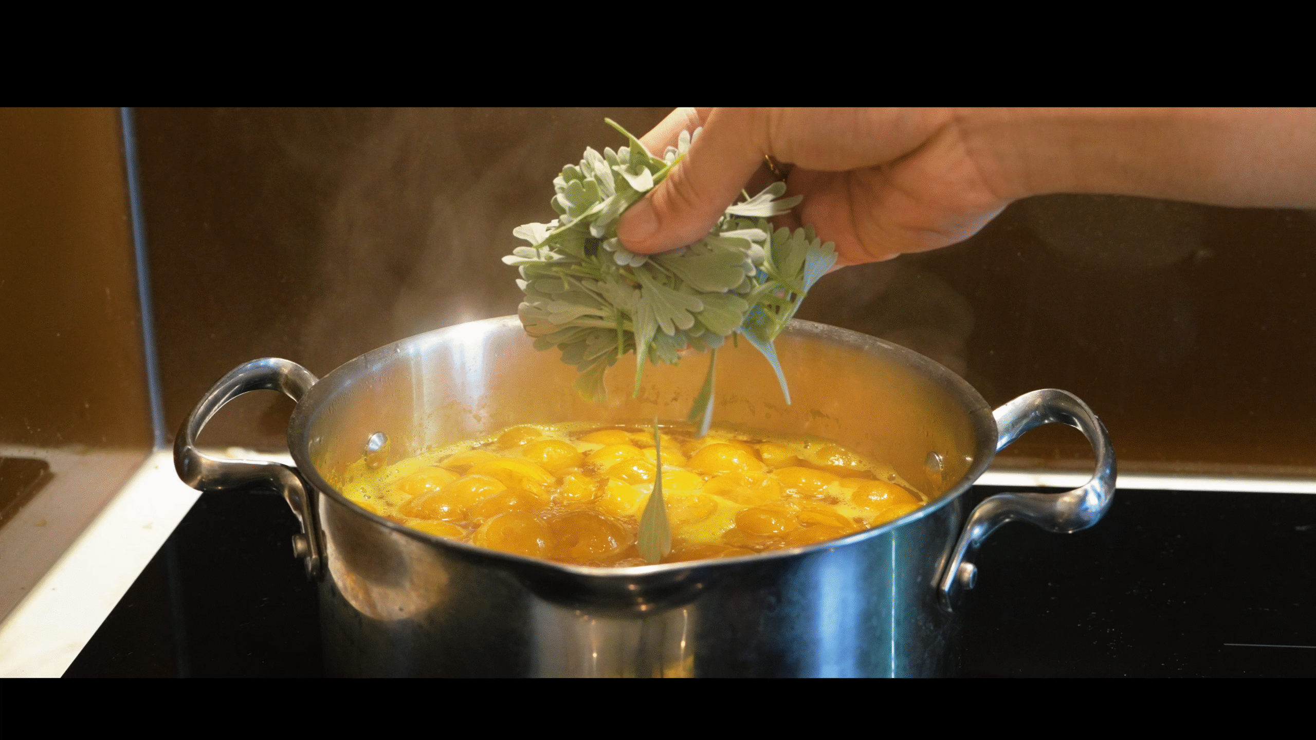 chrysanthemum leaves or you can replace them with lemon basil or white rose petals.